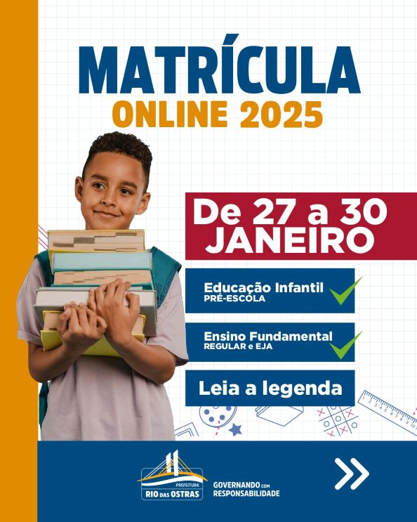 A Prefeitura de Rio das Ostras abre, a partir desta segunda, dia 27, as inscrições para as novas matrículas nas escolas municipais. Alunos interessados em ingressar na Rede Pública Municipal de Ensino deverão fazer o cadastro no Portal da Educação (educacao.riodasostras.rj.gov.